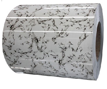The marble pattern is printed on a galvanized or galvalume steel sheet. |